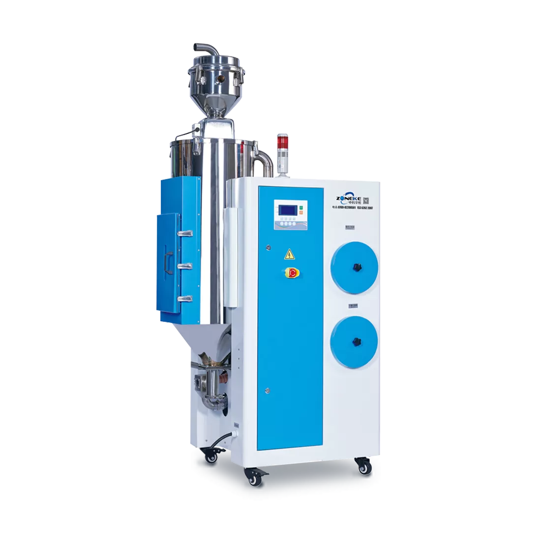 Máy tích hợp ba chức năng hút ẩm, sấy khô và cấp liệu trong một thiết bị. Thiết kế ba trong một không chiếm không gian và có kích thước nhỏ gọn, đặc biệt phù hợp cho những nơi có mức độ tự động hóa cao và không gian hạn chế. Toàn bộ máy sử dụng điều khiển vi tính PLC, thao tác điều khiển đơn giản, hiệu suất ổn định, tiêu thụ điện năng thấp và lưu lượng khí sấy dao động từ 50-400m³/giờ. Ngoài ra, chúng tôi thiết kế máy hút ẩm và sấy khô ba trong một cấp độ quang học để đáp ứng các nhu cầu đa dạng của khách hàng về sản phẩm quang học.